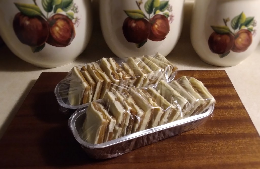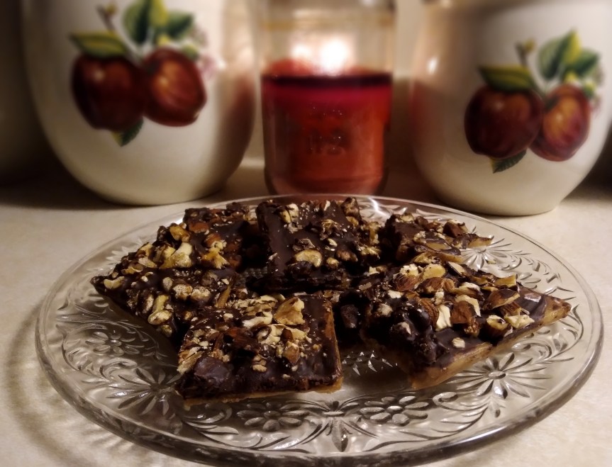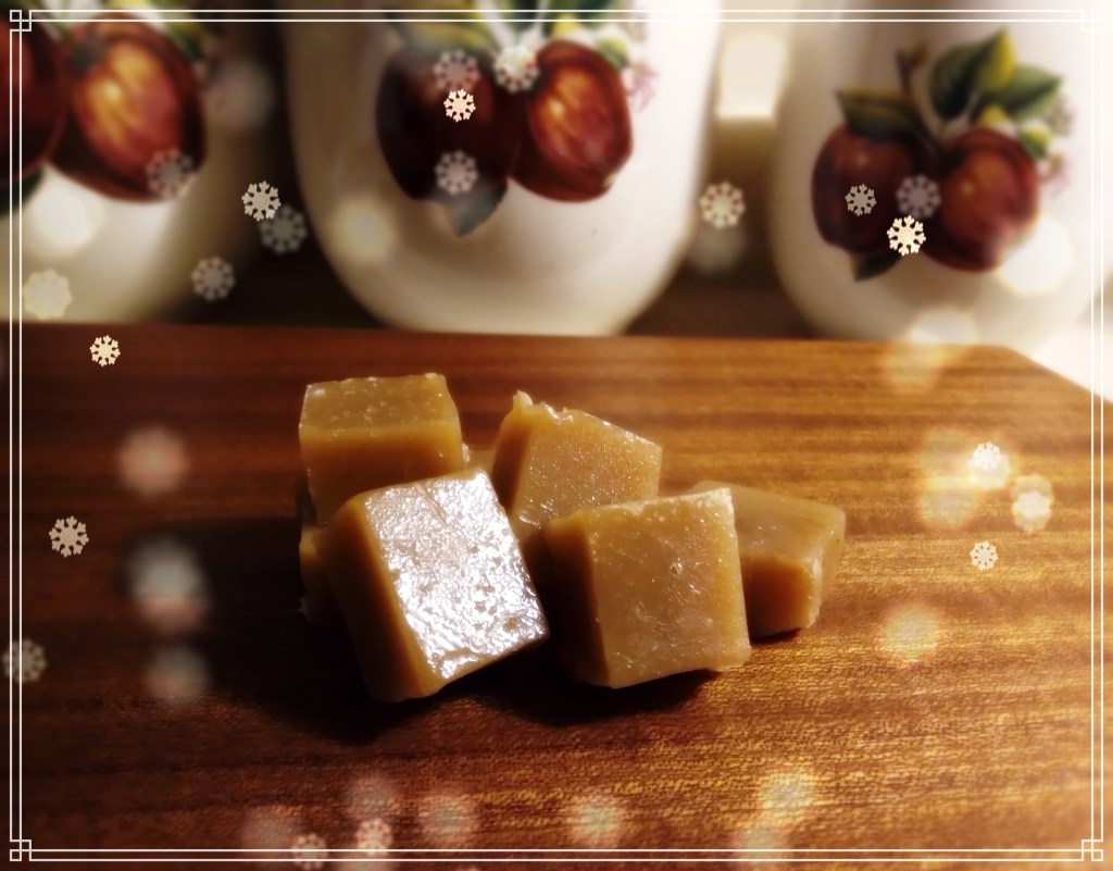 The classic bark candy, made with real butter and containing Vermont maple. This has been my favorite candy for many years, since making it became a Christmas tradition on the family farm. The picture shows both Walnut Buttercrunch and the variation Almond Buttercrunch. Walnut Buttercrunch is the default. But Almond Buttercrunch is available for 50¢ more, per half pound of candy. Pecan Buttercrunch (the best in my opinion) is also available, for 75¢ per half pound (Almonds and Pecans cost more than Walnuts.)